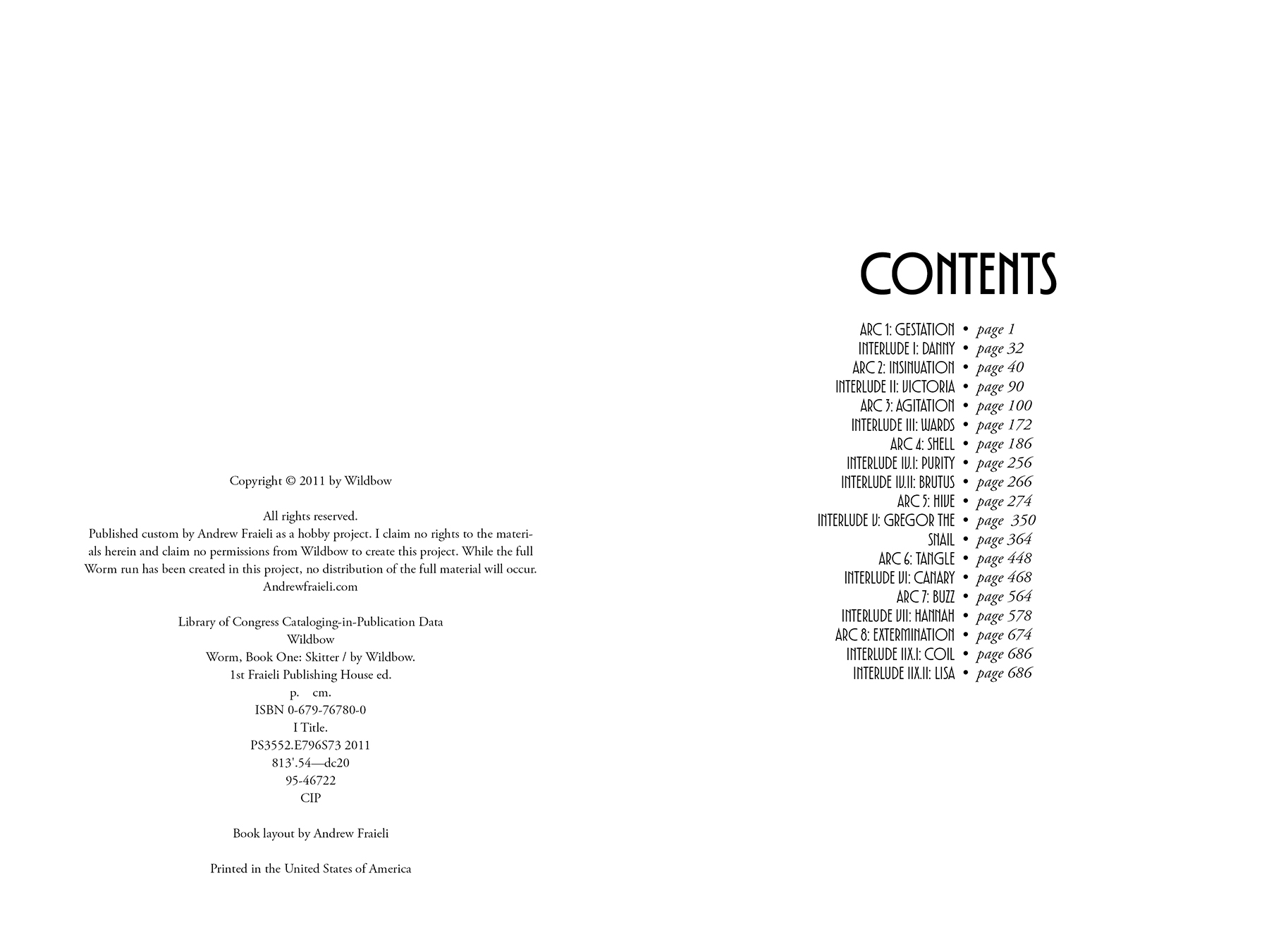 Fiction Novel Type-setting/Interior Layout: Worm